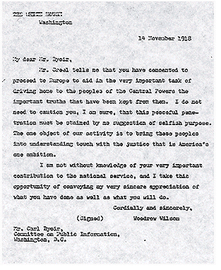 Byoir was still at that job at Hearst when the government's propaganda arm, the Committee on Public Information, came calling. One year before Edward L. Bernays joined the Committee on Public Information, Byoir was called to Washington by George Creel, the journalist-turned-political campaigner who ran the Committee. His combination of a law education, sales, advertising, publishing and journalism skills made Byoir the perfect right-hand man for Creel.