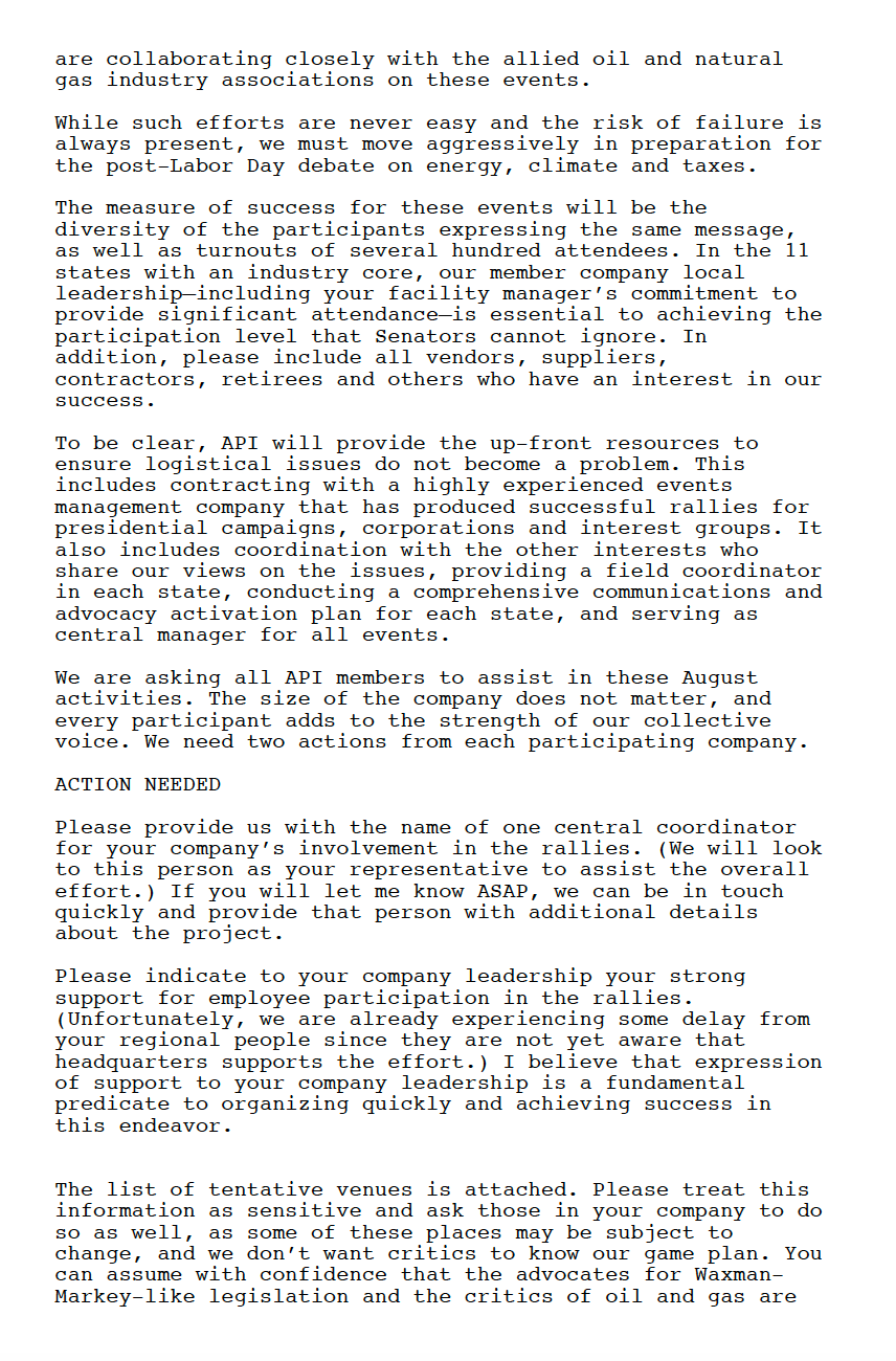 The fossil fuel industry has been using astroturfing—creating fake grassroots groups to give the appearance that the public is for or against some proposed regulation—for decades. Daniel Edelman and his firm Edelman PR were experts in forming and staffing these groups, and strategizing how to use them. "So fossil fuel industry organizations fund these fake front groups and they give these fake front groups these perfectly innocuous names like the California Drivers Alliance or the Washington Consumers for Sound Fuel Policy Group," says Christine Arena, former Edelman VP turned climate advocate. "And these groups—there are hundreds of them—are usually secretly run by lobbying organizations like those two I just mentioned are actually run by the Western States Petroleum Association, which is a top lobbyist for the oil industry. And the Western States Petroleum Association, is in turn funded by members including BP, Shell, Exxon Mobil, Chevron and Occidental, among others. So it's fake activism, it's corporate money posing as activism. And Edelman was a genius at doing that."