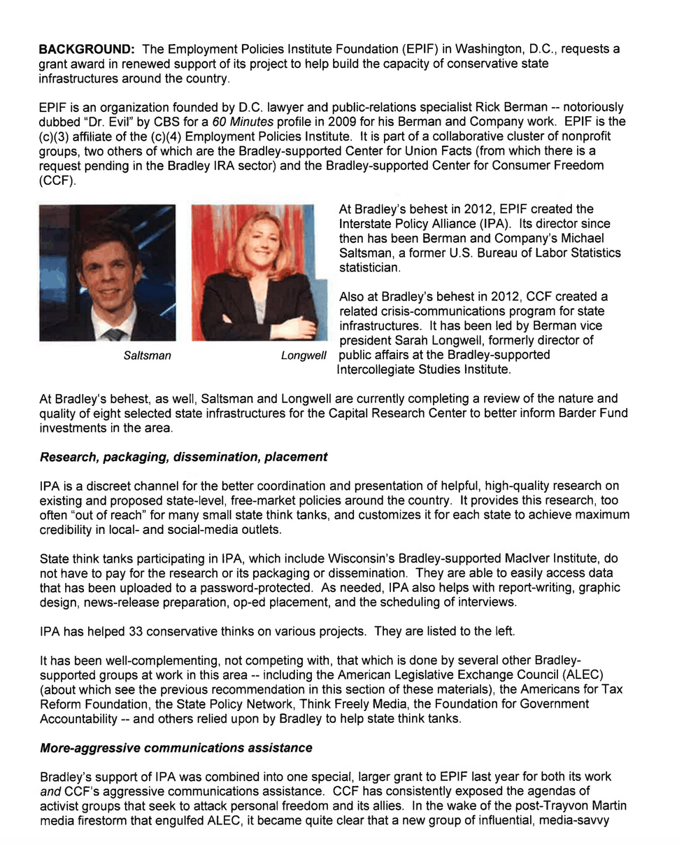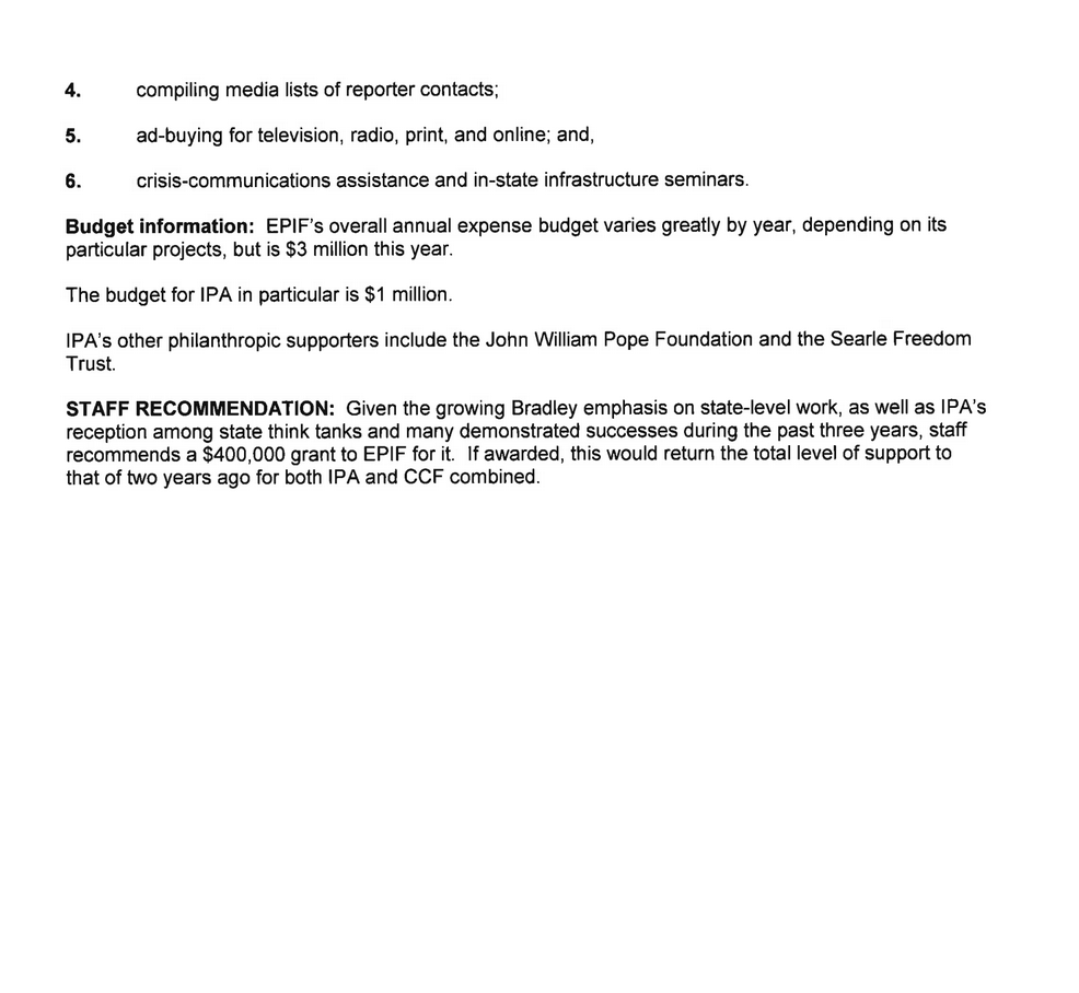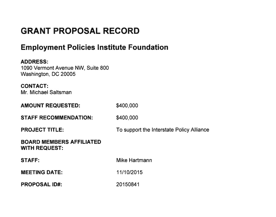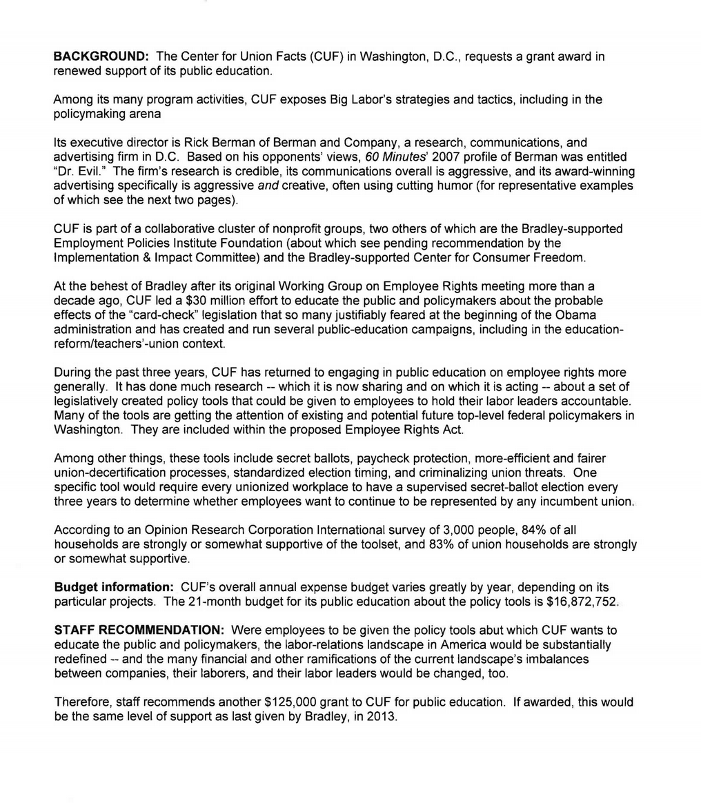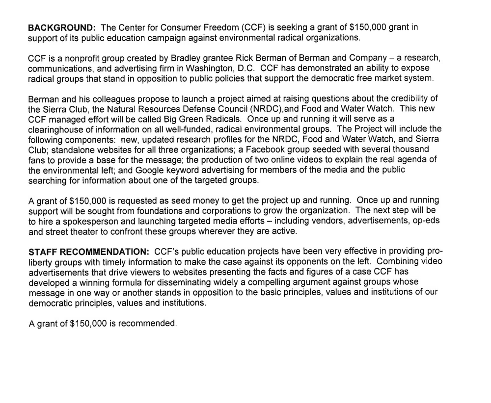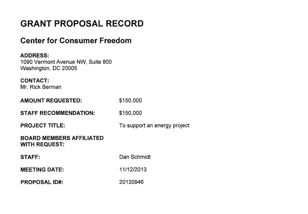 Rick Berman's Funding Proposals